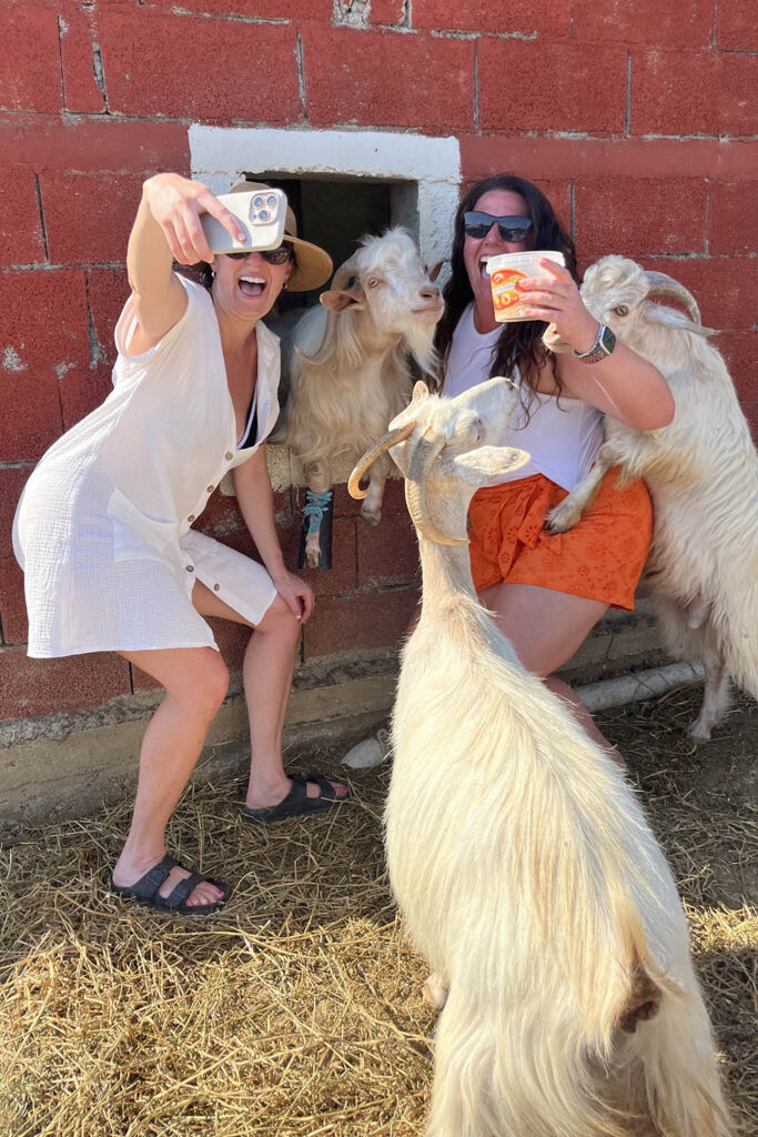 Promenera genom vingårdarna på terrasserna, träffa gårdens djur, ta en selfie med en get – och om du vill kan du till och med prova att mjölka!